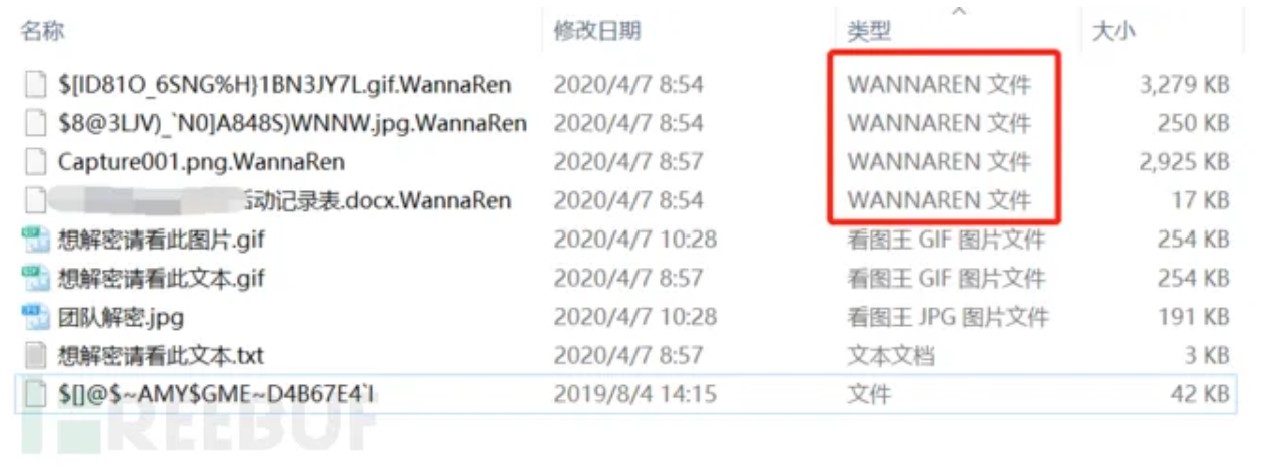 第一名成员电脑(windows 10)感染时,安装火绒的杀毒软件,未开启进程监控,无木马病毒报告,即感染文件被加密,后缀名.WannaRen,怀疑是Wannacry永恒之蓝变种