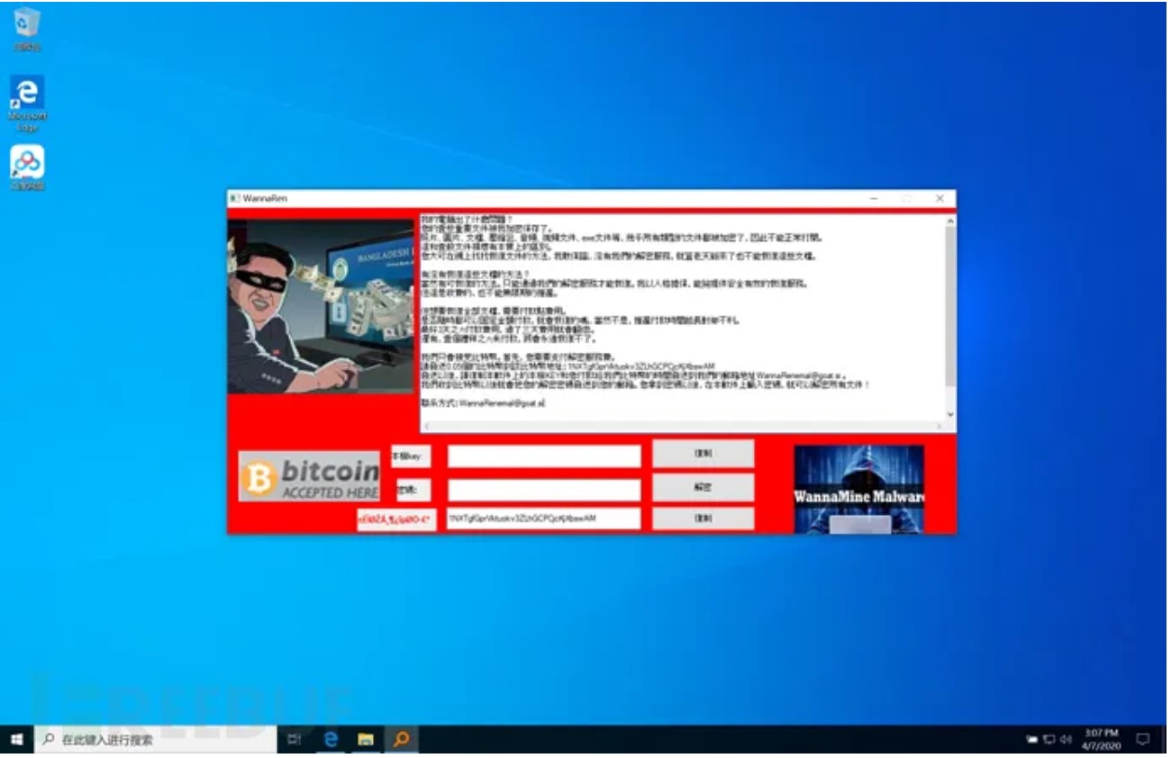 截至目前,在各类贴吧、社区报告PC设备中招求助人数急剧上升,WannaRen对Windows7、Windows10、Windows XP等系统均有感染。