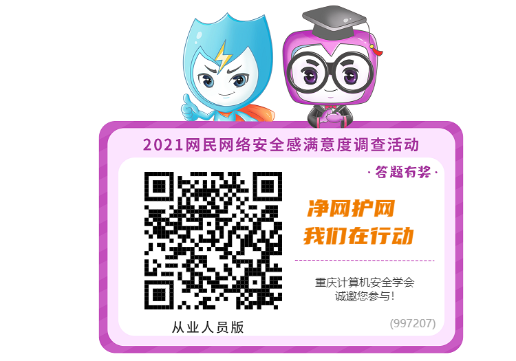 2021年调查问卷将于8月3日上午9时正式上线,于8月12日24时结束,历时10天,届时全国各大网络平台将同步开通线上采集通道。现诚邀全市各重要网络运营单位、网络安全服务机构、重点互联网企业和广大网民积极参与,以举手之劳,表达我们重庆网民关切,共护网络安全。