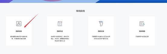 2、登录成功之后,点击“用户中心” –》 “我的信息” –》 “身份信息选择”