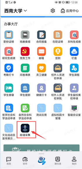 1、可以通过移动版“数智西大(钉钉)”工作台的“脸谱采集”功能进入。