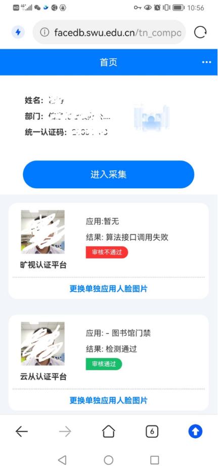 7、审核完成之后,系统会展示当前照片的审核情况,遇到照片“审核不通过”时,请选择“更换单独应用人脸照片”进行更换。