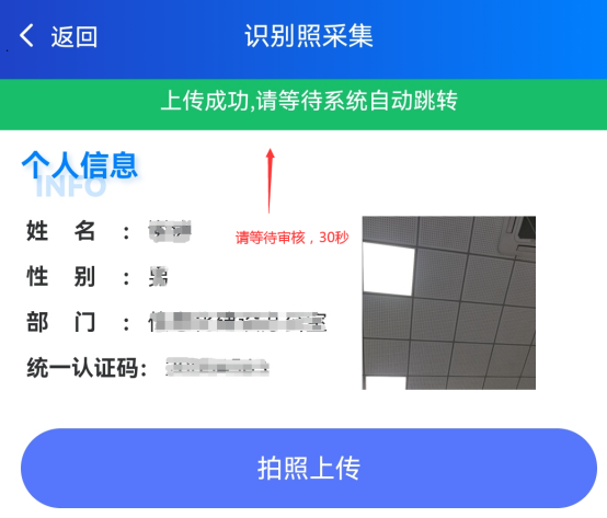 5、点击 “开始采集”,通过“拍照上传”。