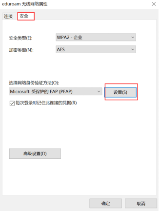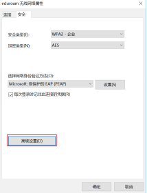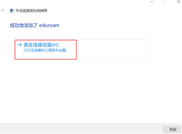6、成功添加eduroam后,请点击“更改连接设置”,如下图所示: