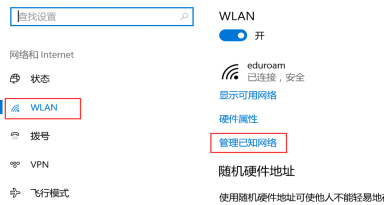 1、点击“无线图标”弹出的“网络和Internet设置”,点击WLAN,选择“管理已知网络”,如下图所示: