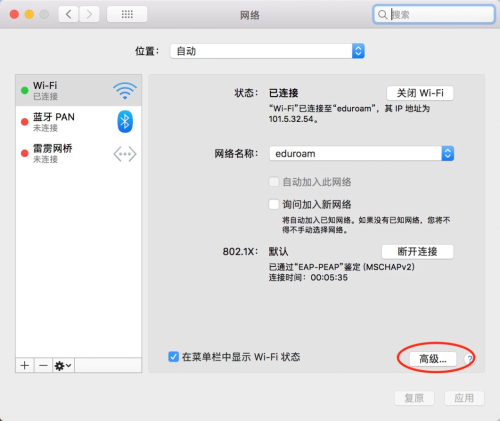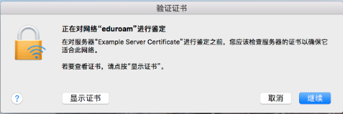 (3)提示对网络“eduroam”进行鉴定,选择继续;