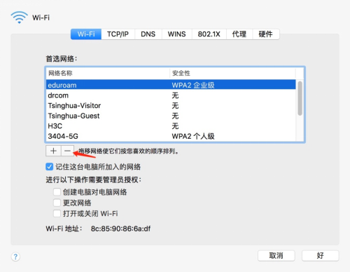 注:如果上述操作不能认证成功,则需要删除配置并重试一次,删除方法如下: