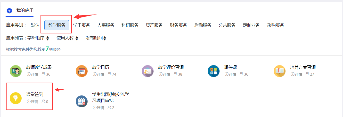 在此基础之上,为更好的服务教师的课堂教学管理,信息化建设办公室开发了“课堂签到”应用,服务课堂考勤记录的需求。现将相关功能通知如下:
